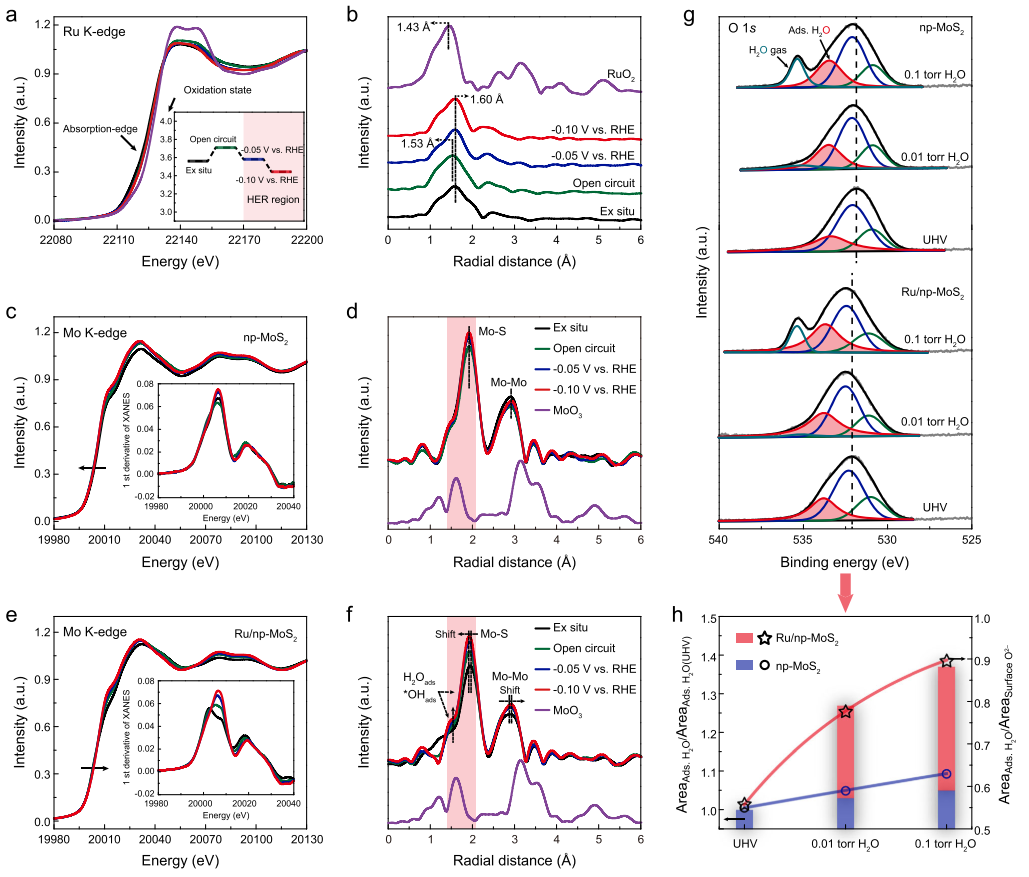 图二:单原子Ru/np-MoS2催化剂的原位机理研究